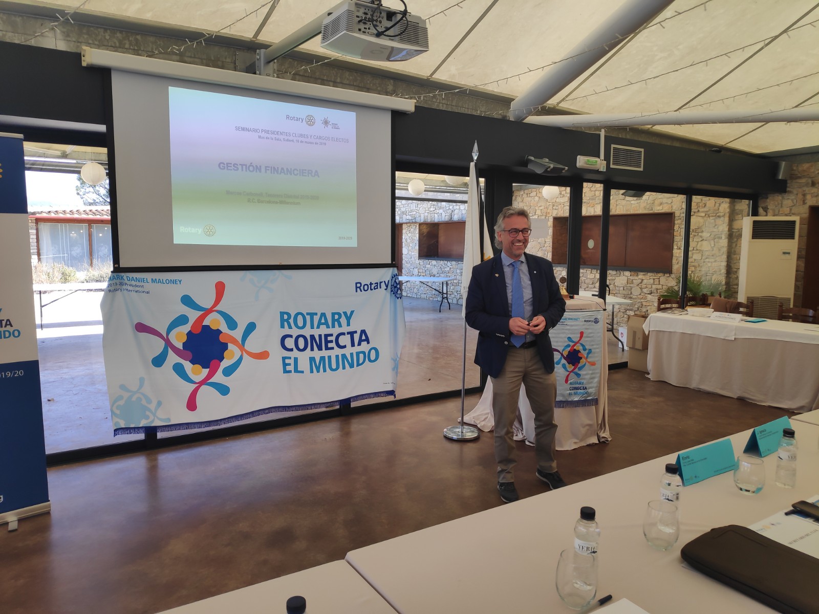 En la primera parte, el Gobernador Electo, Guillem Sàez, presentó el lema del año 2019/20 "Rotary conecta el mundo", y dio a conocer al próximo Presidente de Rotary International, Mark D. Maloney, así como sus metas y objetivos para los clubes, recogidos en la mención presidencial.