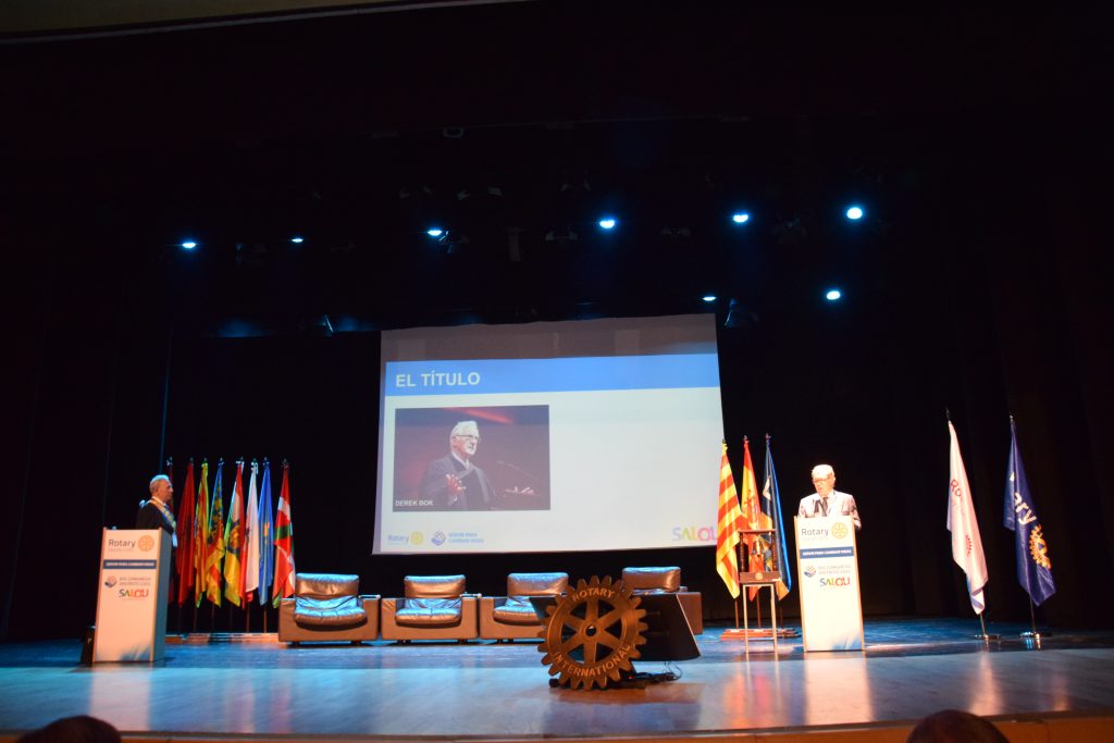 Tras la pausa para el café, Nuria Masdeu, experta en desarrollo económico y Becaria Pro Paz 2017 habló sobre su experiencia y la contribución de los becarios Pro Paz para hacer el mundo mejor y a continuación, José Ramón Echevarría, como representante del Presidente de Rotary International, se dirigió a los presentes dando un repaso a las metas y objetivos de Rotary International.