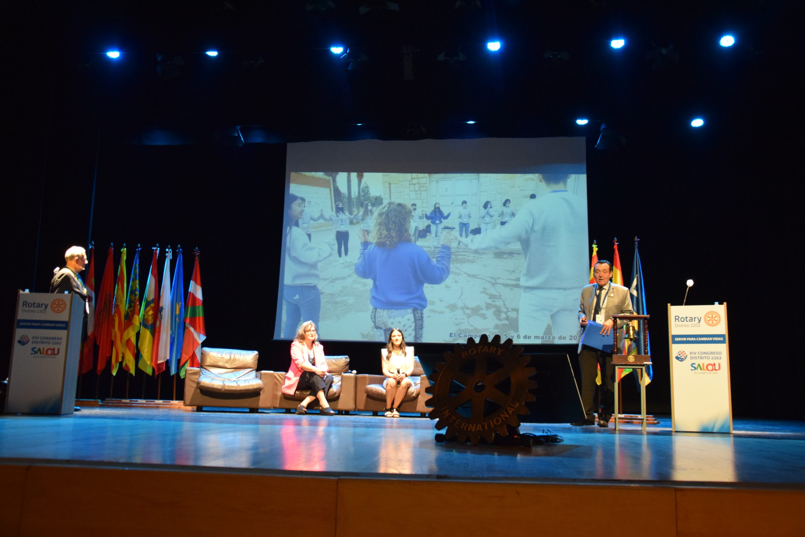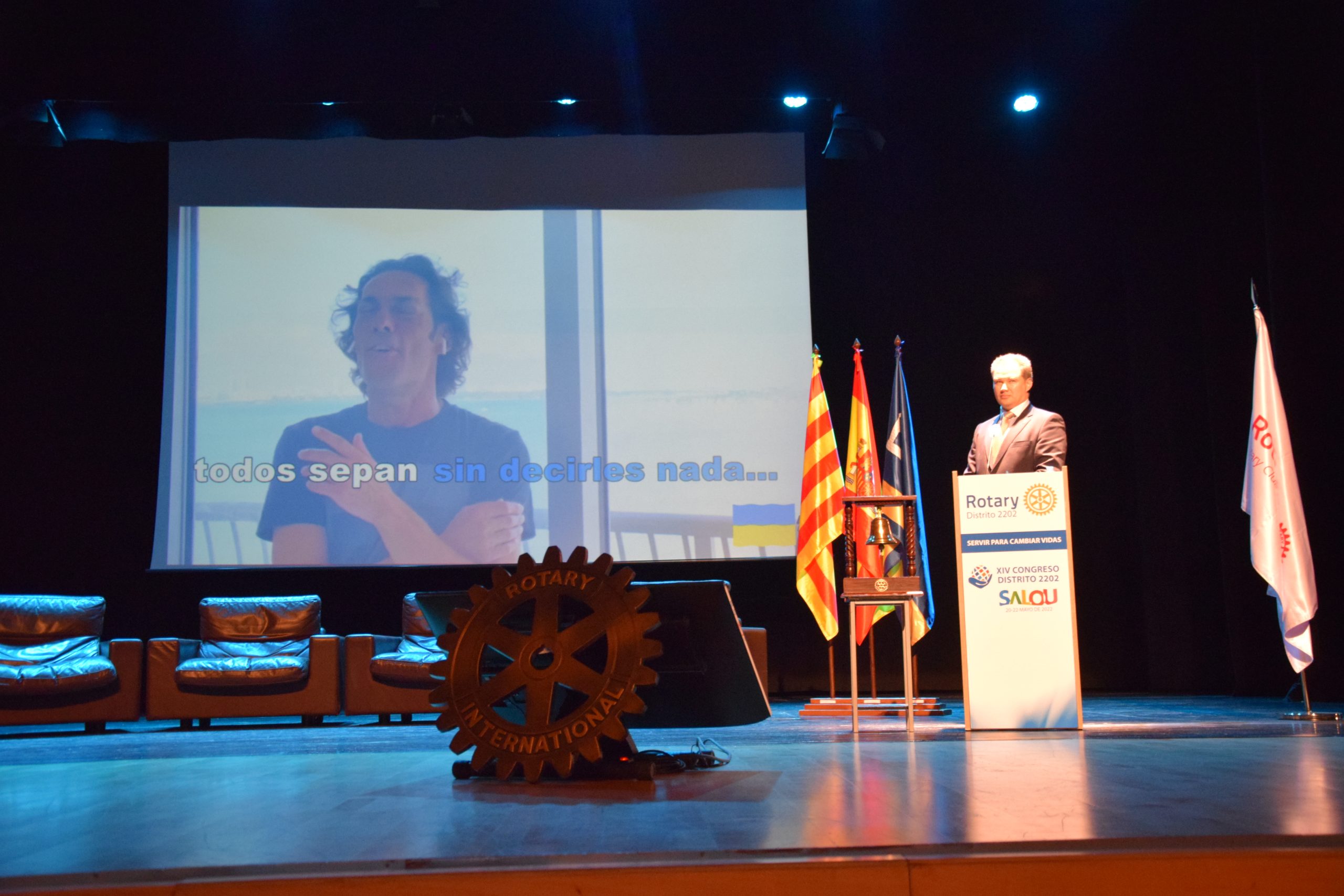 Seguidamente, a las 16.30h y tras la acreditación de los congresistas, en las instalaciones del Auditorio Teatro de Salou (TAS), se celebró la inauguración del acto, con el “tradicional saludo de las banderas”, la invocación rotaria a cargo del PRID y ExTFR, Julio Sorjús, del Club rotario de Barcelona Condal y el toque de campana por nuestro Gobernador.