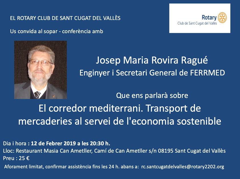 CONFERENCIA: "EL CORREDOR MEDITERRANI. TRANSPORT DE MERCADERIES AL SERVEI DE L'ECONOMIA SOSTENIBLE" DE JOSEP MARIA ROVIRA RAGUÉ